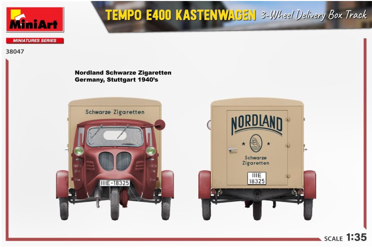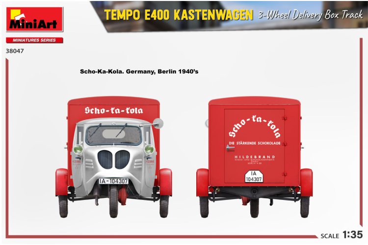 1:35 MiniArt 38047 Tempo E400 Kastenwagen 3-Wheel Delivery Box Track Plastic Modelbouwpakket