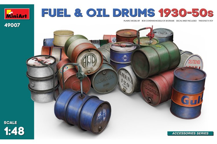 1:48 MiniArt 49007 Fuel & Oil Drums 1930-50s Plastic Modelbouwpakket